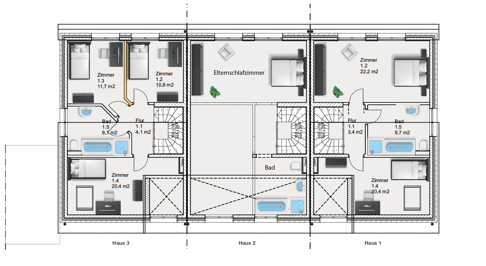 Besonders hervorzuheben ist die Hausbreite von 7,0 m, welche eine sehr variable Grundrissgestaltung auf ca. 140 m² Wohnfläche garantiert.